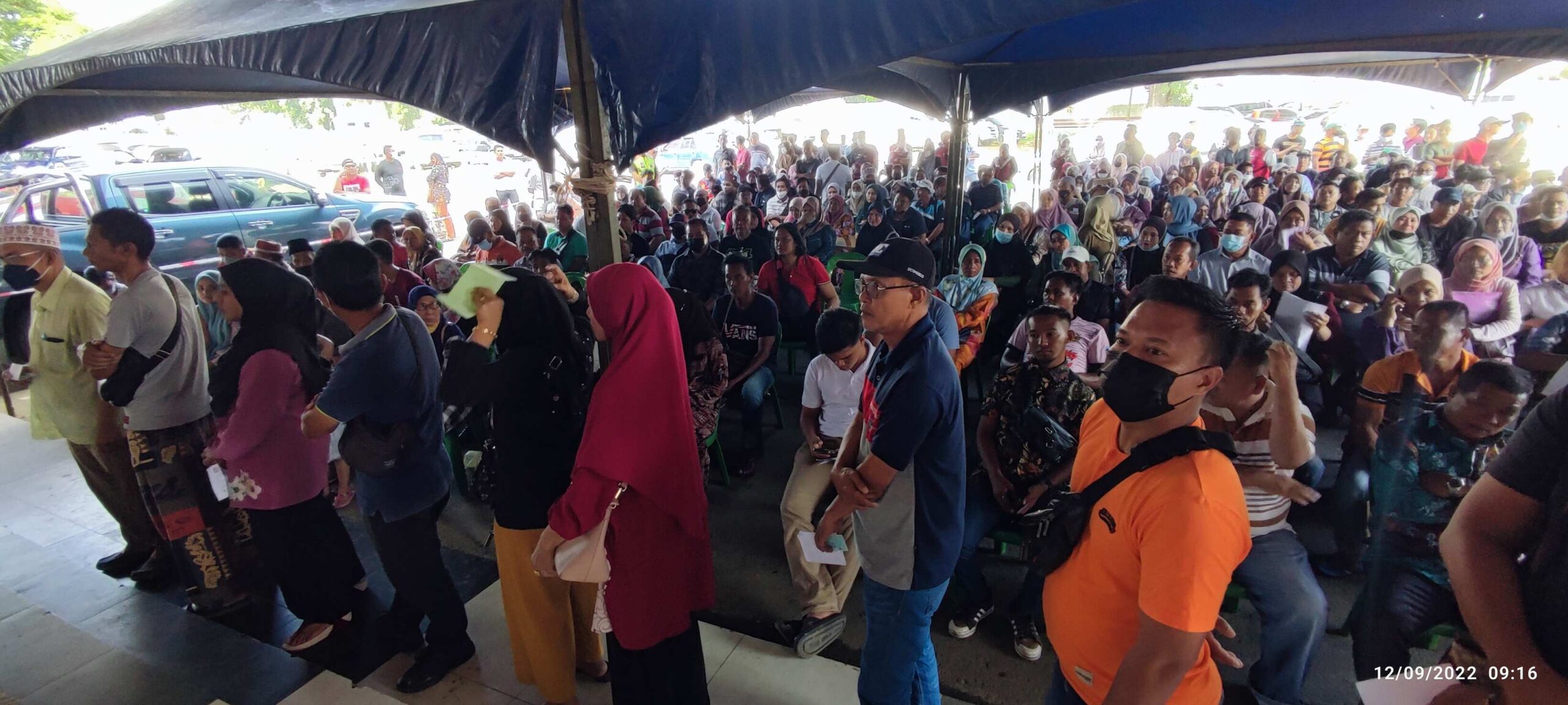 Program Cabutan Undi Peniaga Pasar Sejahtera telah berlangsung dengan lancar di Dewan Masyarakat Semporna dengan penglibatan lebih enam ratus pemohon yang hadir bagi menyaksikan proses pemilihan lot perniagaan secara telus dan teratur.