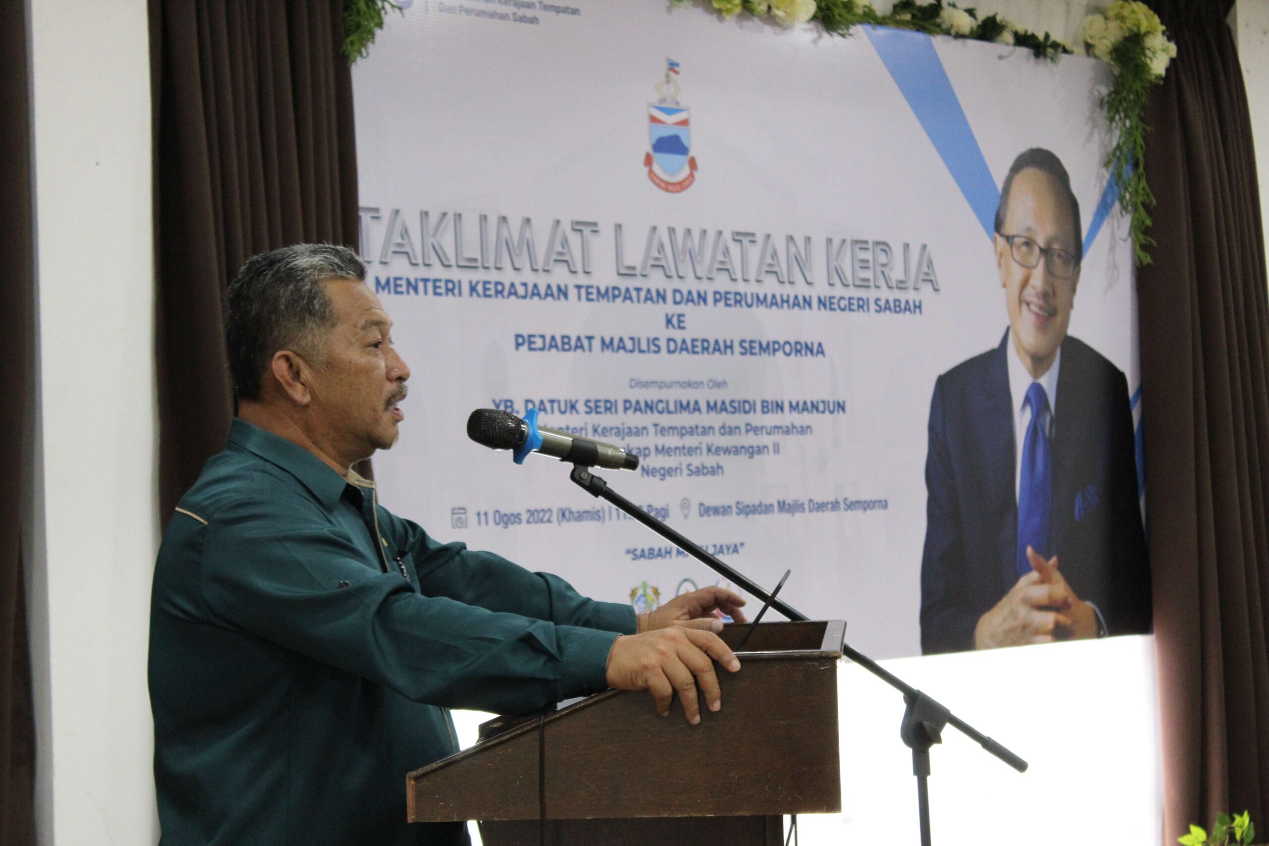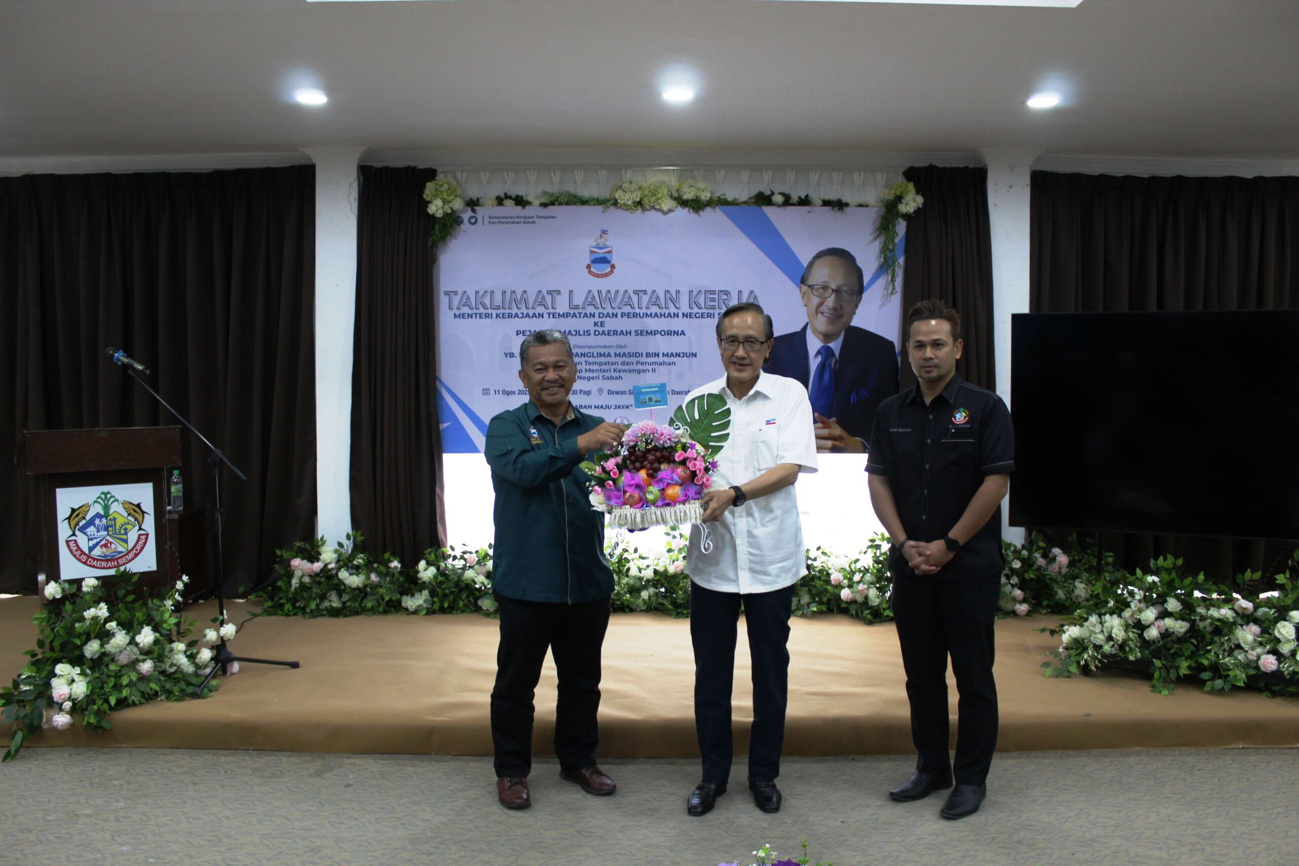 Lawatan kerja Datuk Seri Panglima Haji Masidi bin Manjun, Menteri Kerajaan Tempatan ke Pejabat Majlis Daerah Semporna telah berlangsung dengan jayanya dalam suasana penuh tertib dan profesional. Lawatan ini bertujuan untuk meninjau pelaksanaan dasar kerajaan di peringkat pihak berkuasa tempatan serta memperkukuhkan hubungan kerjasama antara kementerian dan pihak majlis.