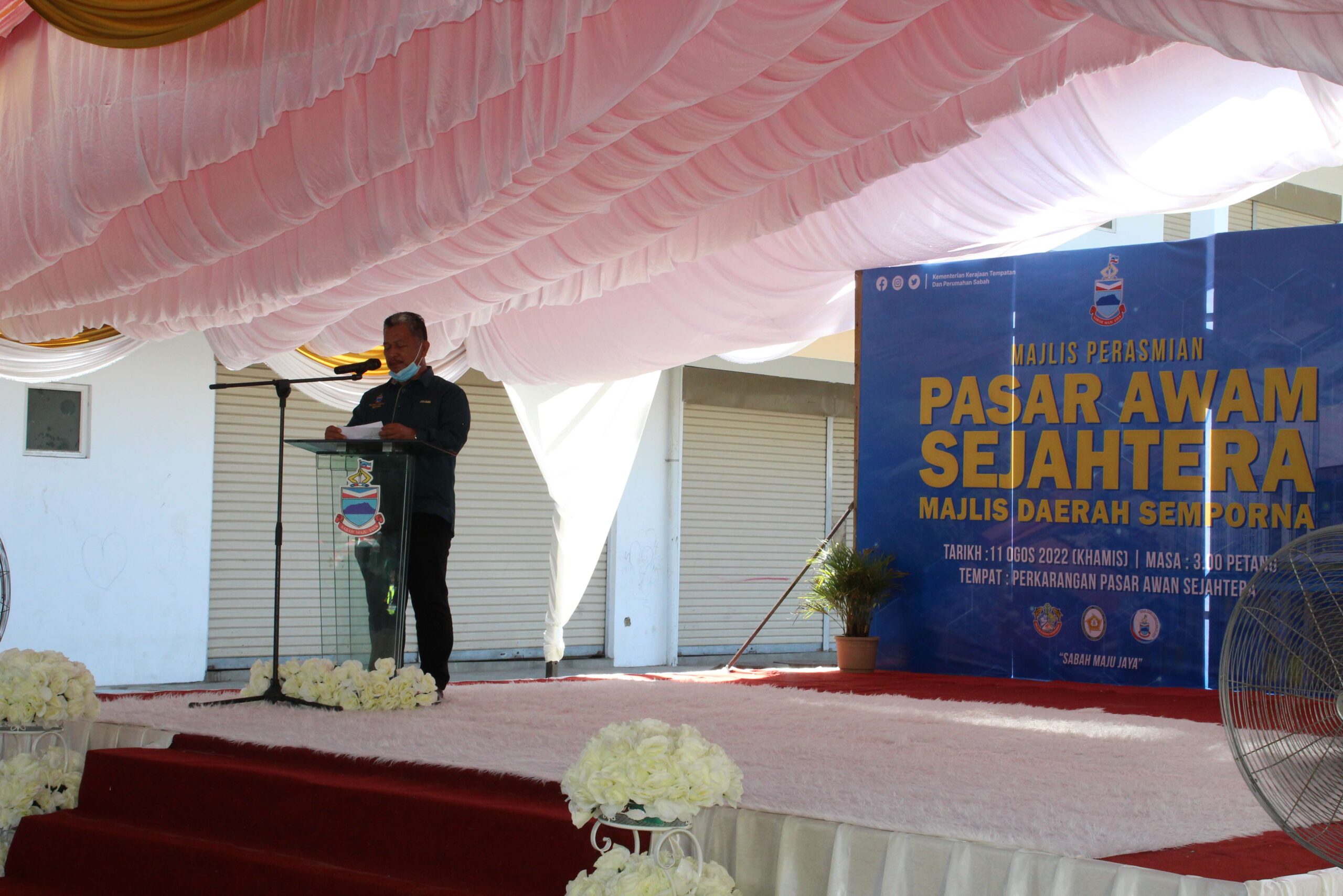 Majlis Perasmian Pasar Awam Sejahtera anjuran Majlis Daerah Semporna telah berlangsung dengan penuh meriah dan jayanya. Perasmian ini menandakan satu lagi pencapaian penting dalam usaha majlis mempertingkatkan kemudahan awam serta merancakkan aktiviti ekonomi setempat.